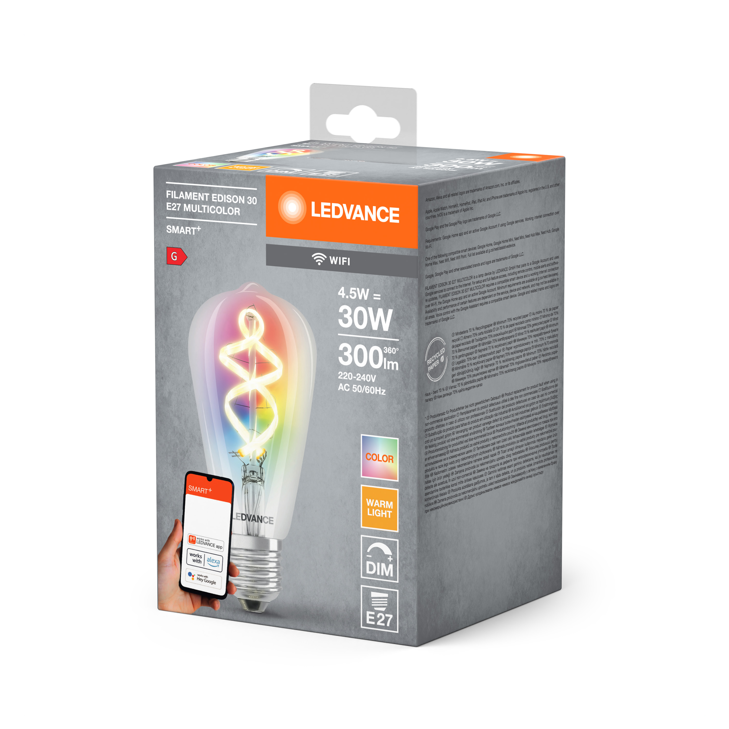 | SMART+ WiFi Filament Edison Multicolour RGBW 30 4.5 W/2700 K E27 |